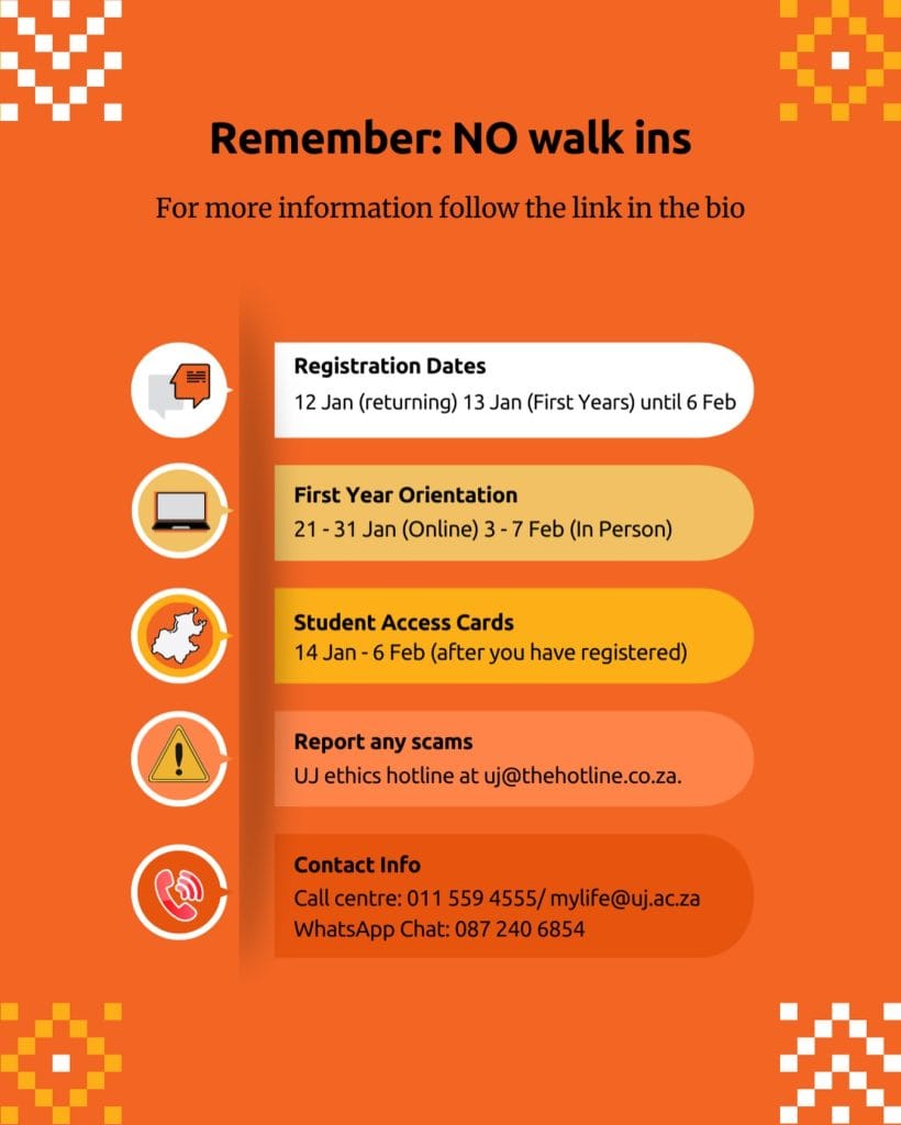 UJ’s registration page also contains links to information letters, device requirements, and financial guidance. Regularly check the Registration section of UJ’s website and follow official social-media channels for updates.